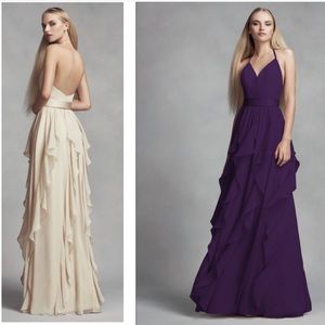 Used Vera Wang White High-Neck Crepe Halter Bridesmaid Gown with Sash Bridesmaid Dress 100. This high-neck crepe-bodice halter gown features a bow detail at the back a draped charmeuse skirt with a middle slit for ease of movement and side pockets. Whether youre going for a soft beige or a deep chocolate brown these warm hues are a dreamy choice for weddings year-round.