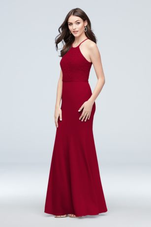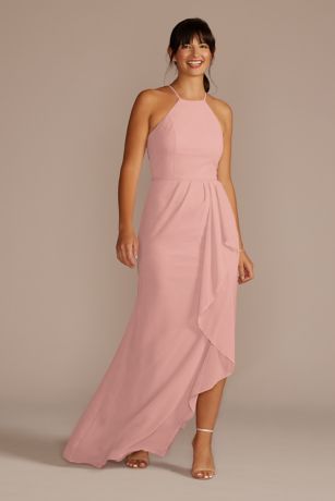 Were here every step of the way whenever you need us. Whether youre going for a soft beige or a deep chocolate brown these warm hues are a dreamy choice for weddings year-round. This high-neck crepe gown with. Mist 30 colors. Express shipping free returns. One-Shoulder Midriff Cutout Maxi Dress. VW360463 - Bridesmaid Dresses - This high-neck crepe-bodice halter gown features a bow detail at the back a draped charmeuse skirt with a middle slit for ease of movement and side pockets.